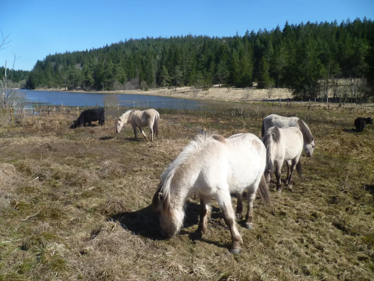 Le Conservatoire vous invite à une sortie automnale originale aux côtés de ses chevaux Koniks polskis. Les participants accompagneront les animaux jusqu’au marais de l’étang de Barchet, classé Espace naturel sensible par le Département du Doubs. Ils y retrouveront les vaches Galloways déjà sur place.