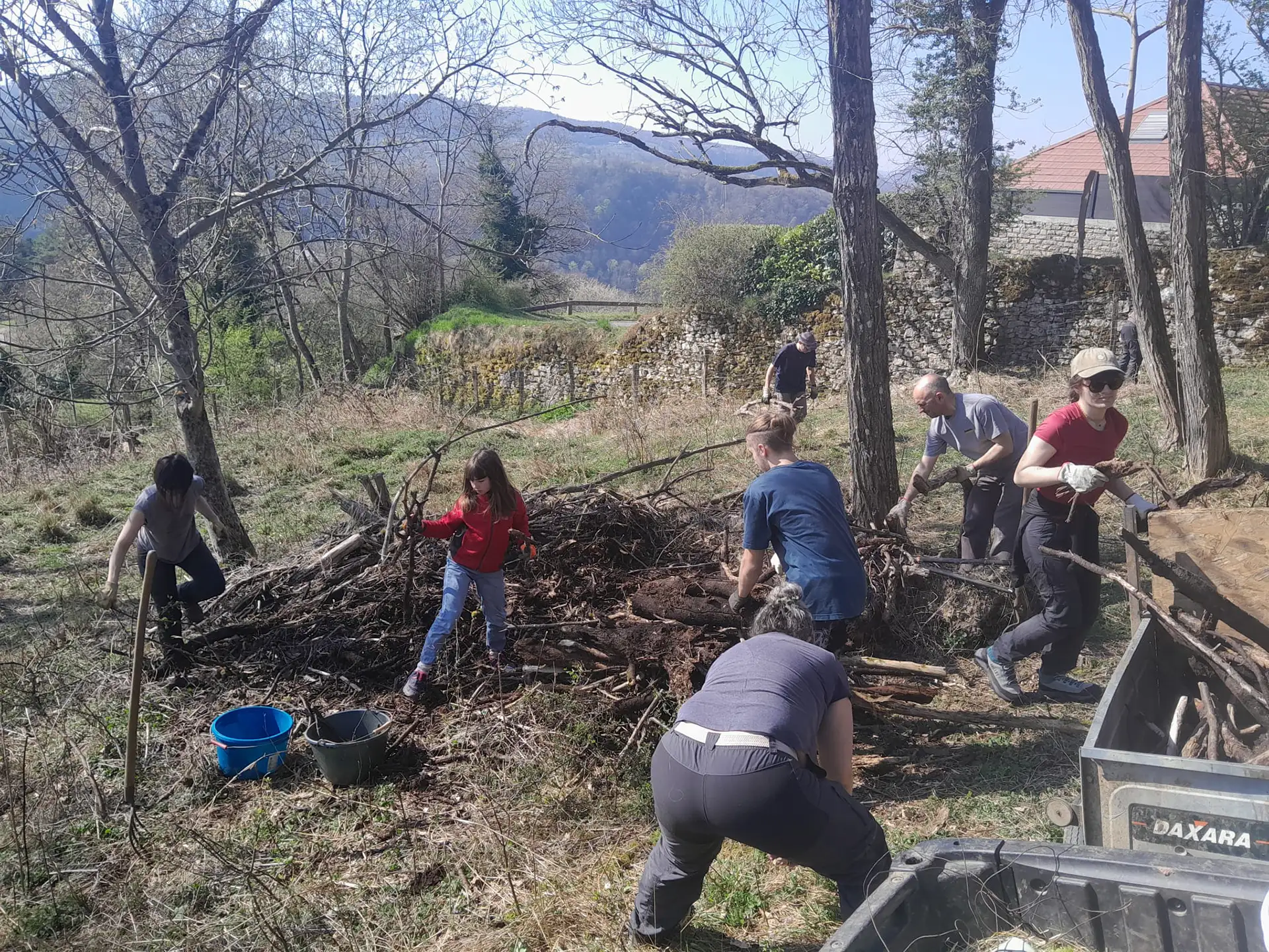 Samedi 21 mars, les bénévoles du Conservatoire et de la Ferme des Ragots ont joint leur force et leur énergie pour une belle journée d’action sur une pelouse sèche de la colline de Bregille, site préservé par l’association.