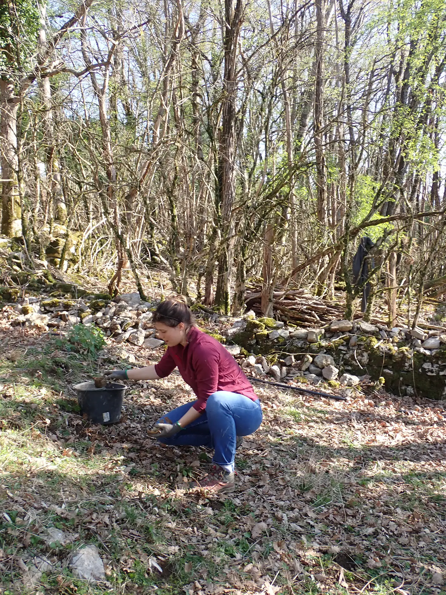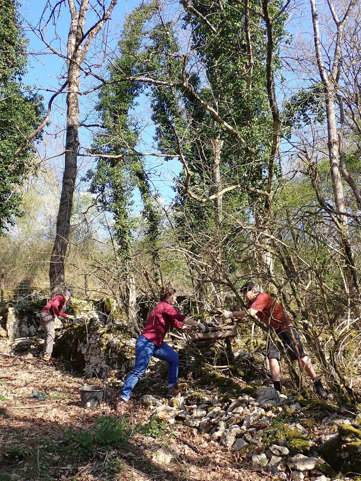 Les bénévoles motivés ont commencé par ramasser les pierres sèches tombées des murgers entourant la parcelle, afin de les reconstituer là où ils s’étaient amoindris.
