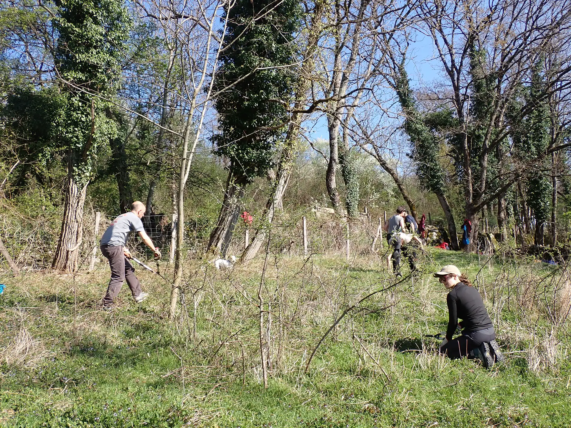 Grâce à la quinzaine de participants présents et à l’énergie de Lusiane, qui exploite les terrains, la parcelle a rapidement retrouvé son caractère herbacé, plus favorable au pâturage par les moutons et les chèvres.