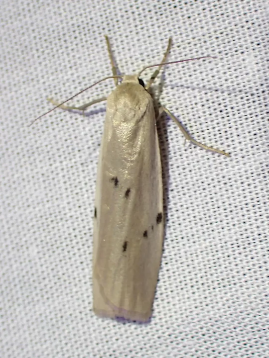 Même si les papillons n’étaient pas nombreux ce soir-là, l’échantillonnage s’est révélé assez représentatif avec, par exemple, la noctuelle à museau, dont la chenille se nourrit d’orties abondantes en lisière de tourbière, ou encore la lithosie crotte-souris, dont les chenilles consomment les lichens présents sur les saules et les aulnes.