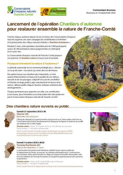 - Clémence Curlier, chargée de communication • 06 71 31 63 61 • clemence [point] curlier [arobase] cen-franchecomte.org