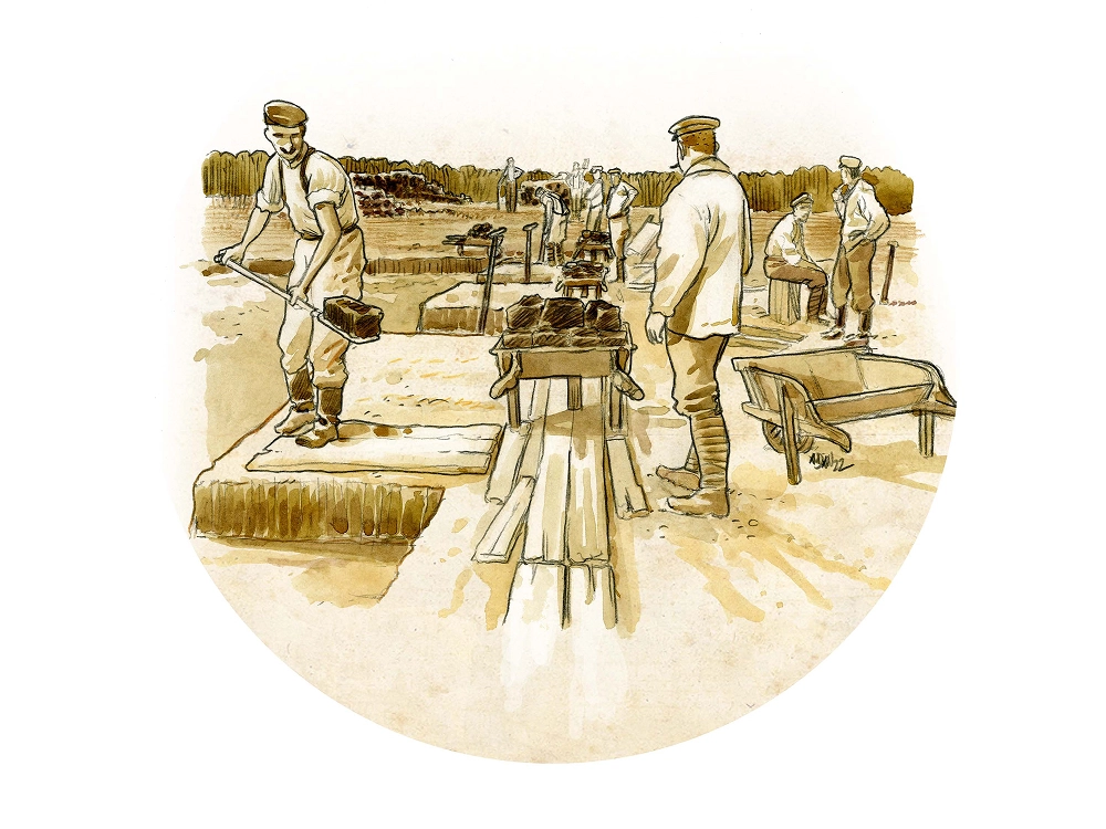 Image d’illustration : Prisonniers allemands en train d’extraire de la tourbe par A. Dan