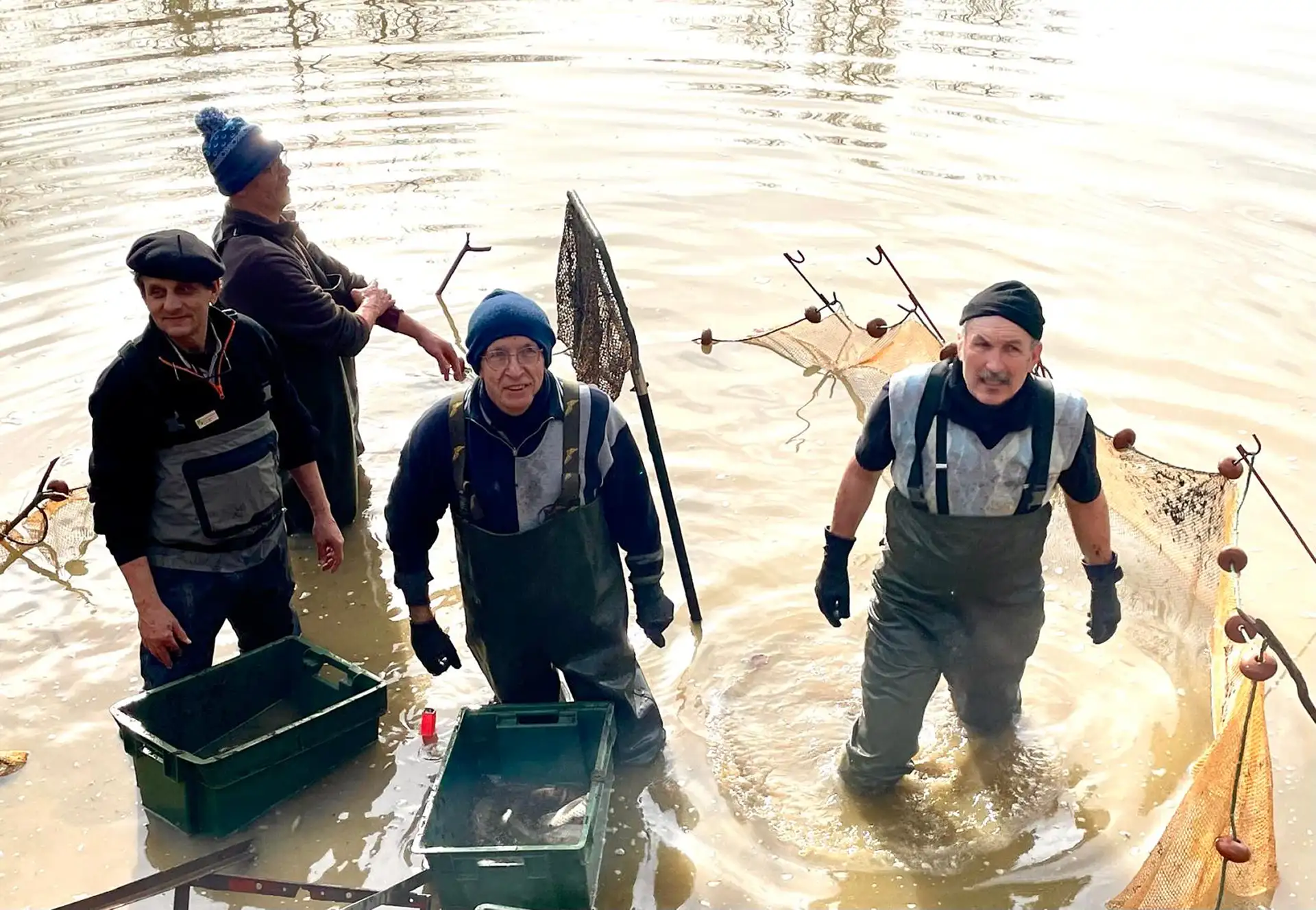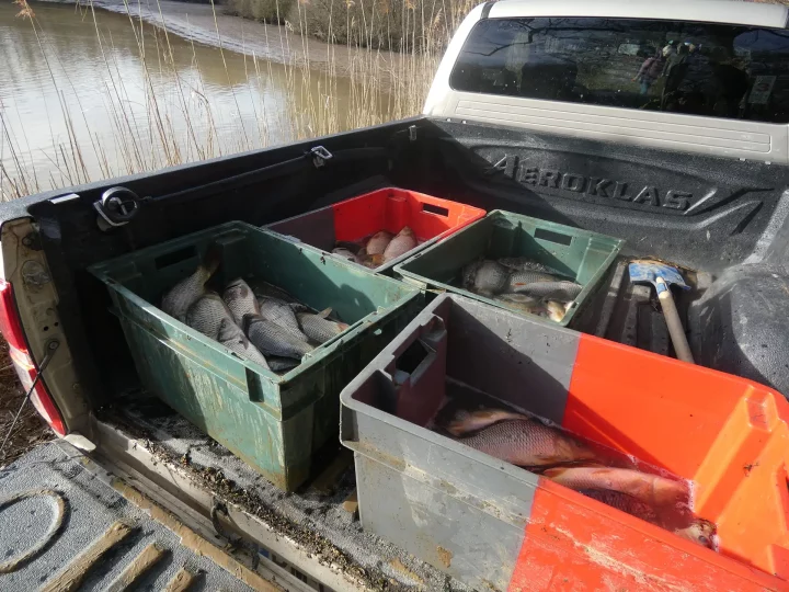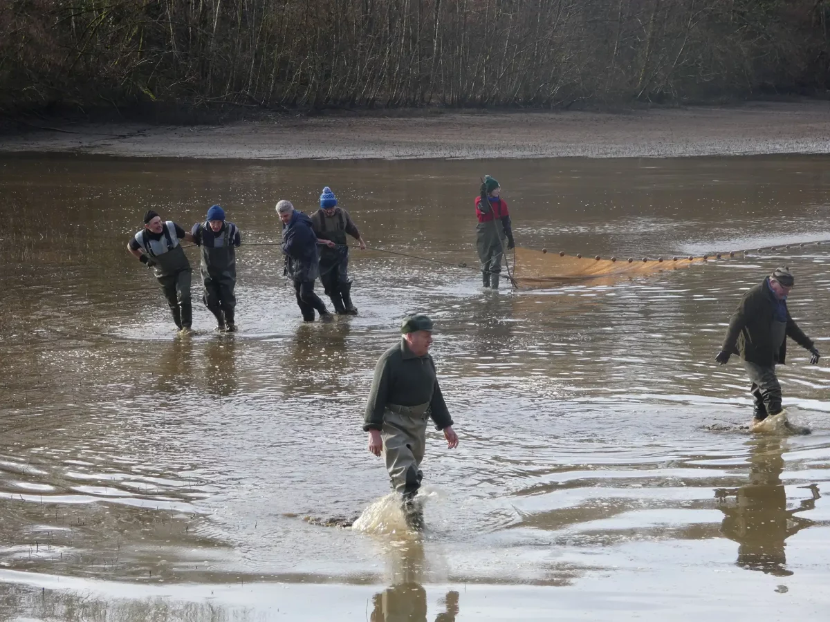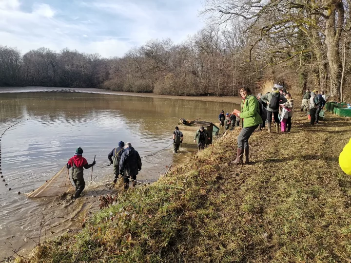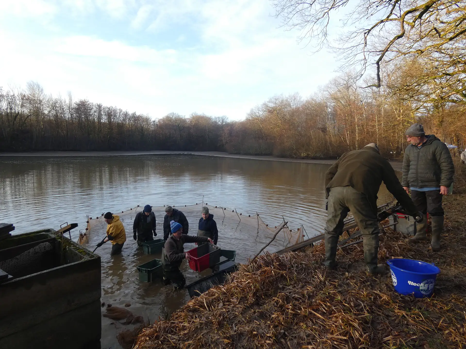 Près de quarante participants – adhérents de l’association et habitants de la commune – sont venus assister à une pêche traditionnelle bressane réalisée par la Pisciculture des marais à l’étang au Curé, site préservé par le Conservatoire depuis plus de 20 ans.