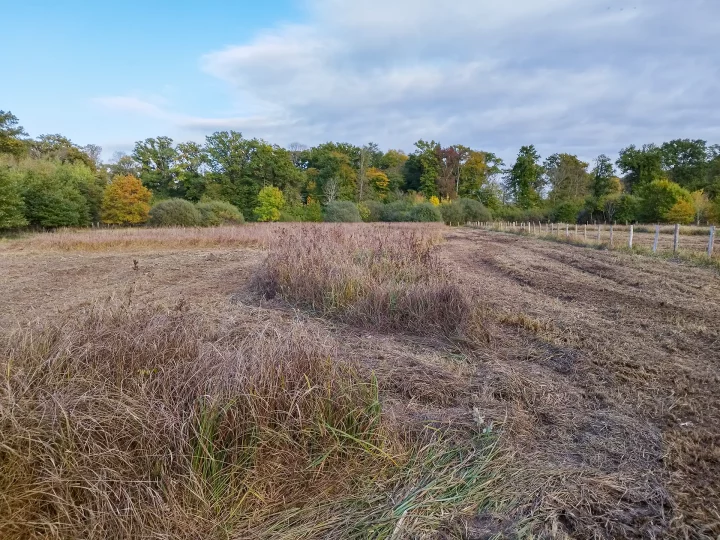 En septembre 2022, le Conservatoire a réalisé un premier broyage des repousses arbustives puis, les deux années suivantes, un partenariat a été construit avec un éleveur pour mettre en place un pâturage adapté aux enjeux de préservation du site. La fauche tardive a en effet été écartée car rendue impossible par la microtopographie très marquée résultant de l’exploitation des peupliers.